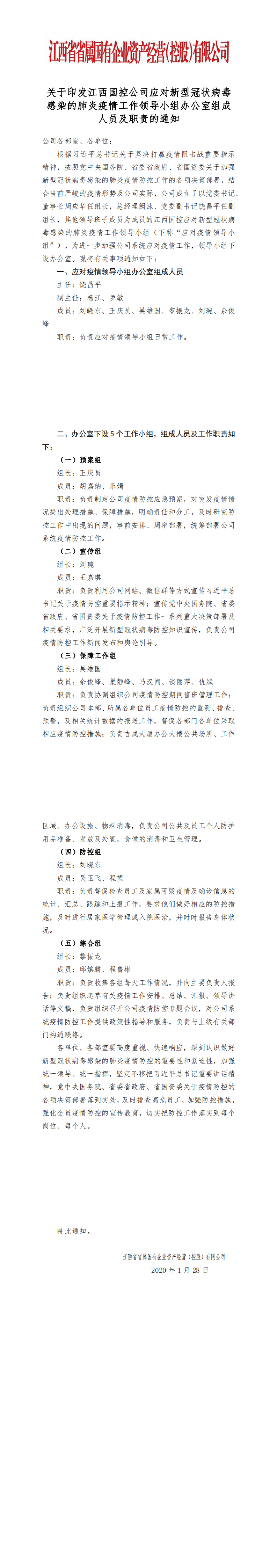 关于印发江苏国控公司应对新型冠状病毒感染的肺炎疫情工作领导小组办公室组成人员及职责的通知