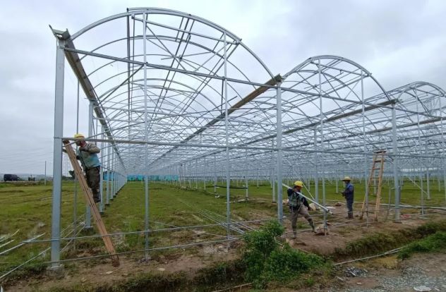 图为绿时代公司乐平万亩蔬菜大棚项目的建设者坚守岗位,目前已完成整体工程量的50%。