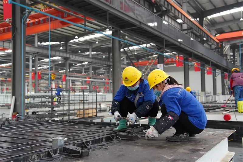 图为江金沙9001w以诚为本客户工建筑产业园工人正在加紧生产