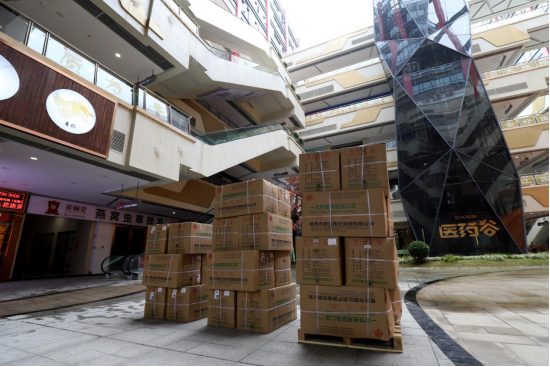 在国信医药谷大厅内,整齐码放着由江苏国控公司捐赠的50箱爱心口罩,共计20万只。这些爱心口罩将全部用于满足市民口罩防疫物资需求,对社会弱势群体会优先发放,为疫情防控工作贡献力量,彰显国企担当。