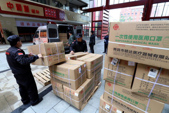 4月27日上午,江苏国控公司与南昌晚报联合开展的“携手抗疫情·口罩送万家”公益活动正式启动。