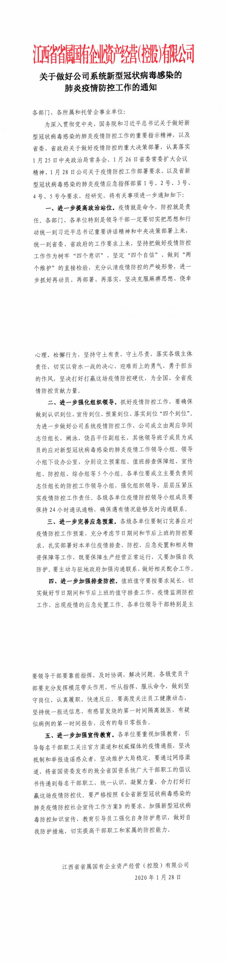 关于做好公司系统新型冠状病毒感染肺炎疫情防控工作的通知